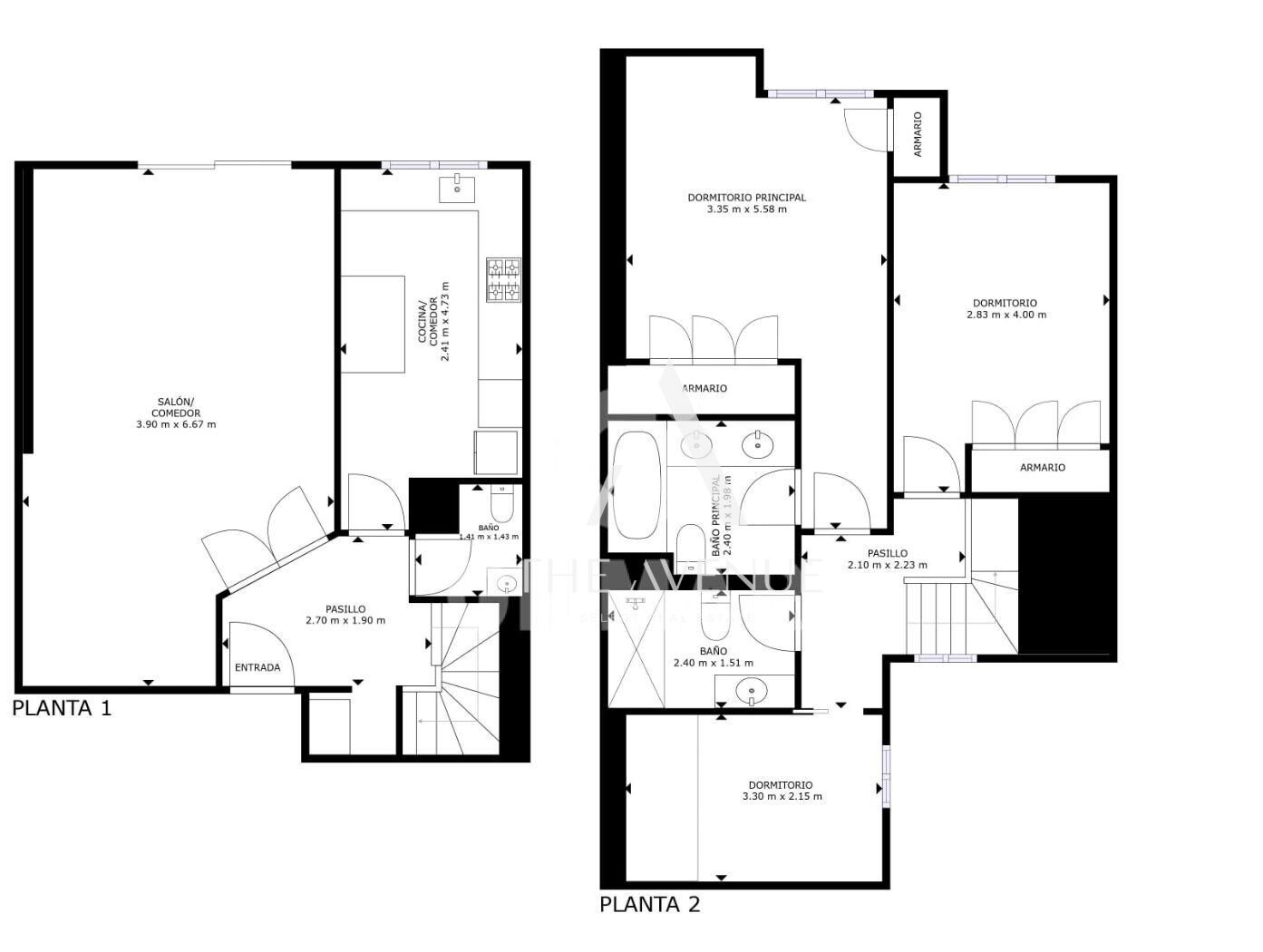 La planta superior está destinada para el descanso con tres amplias habitaciones, equipadas con armarios empotrados que optimizan al máximo el espacio. El dormitorio principal tiene el baño en suite, mientras que los otros dos comparten un baño completo.
