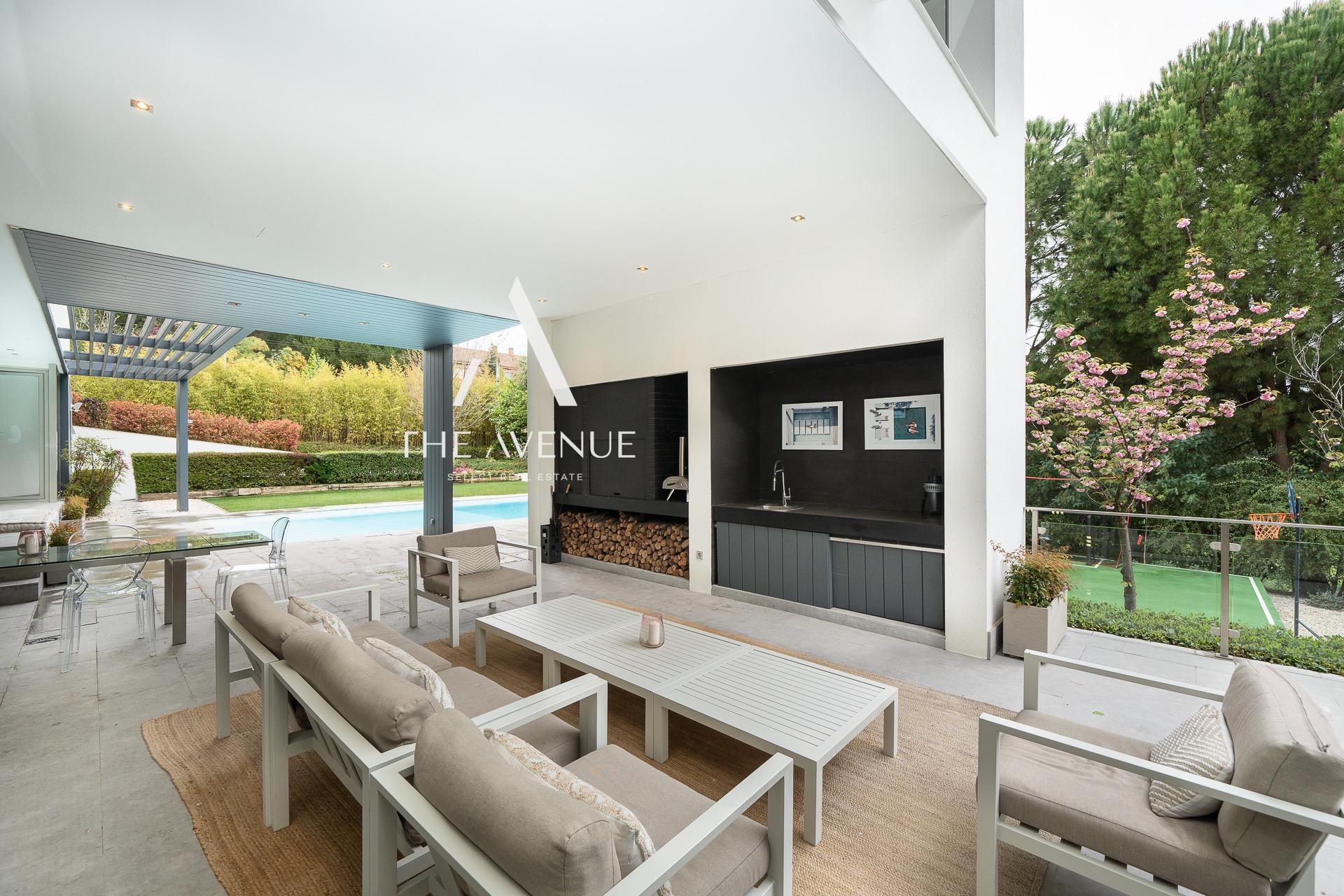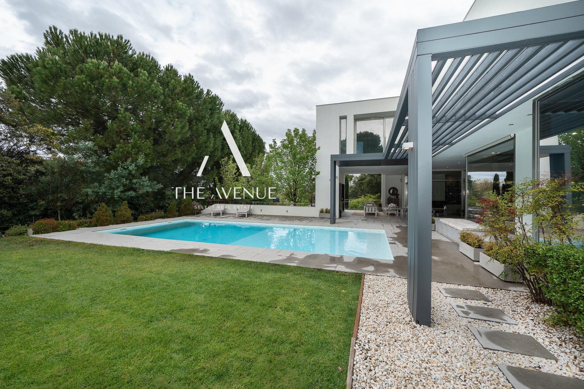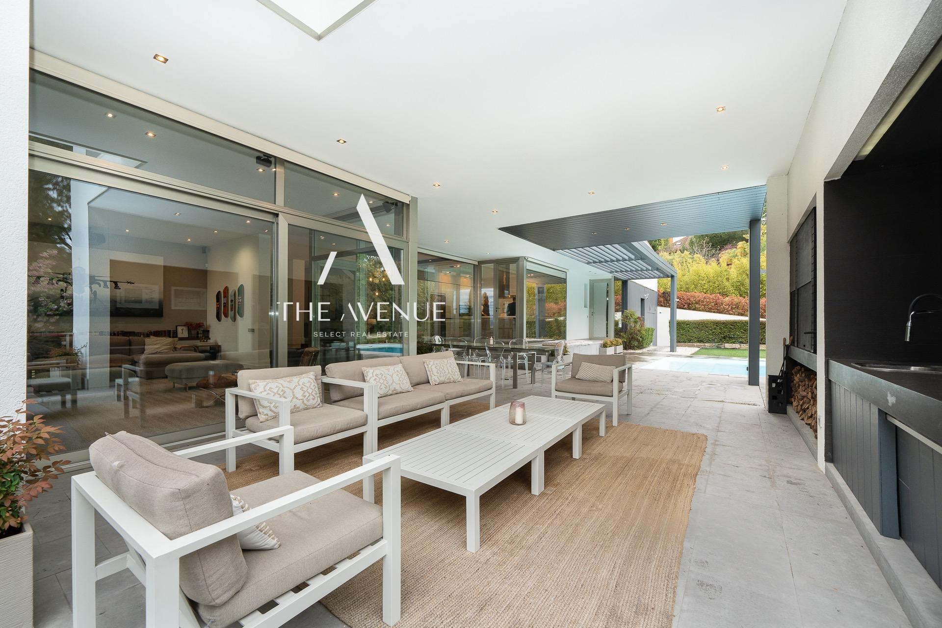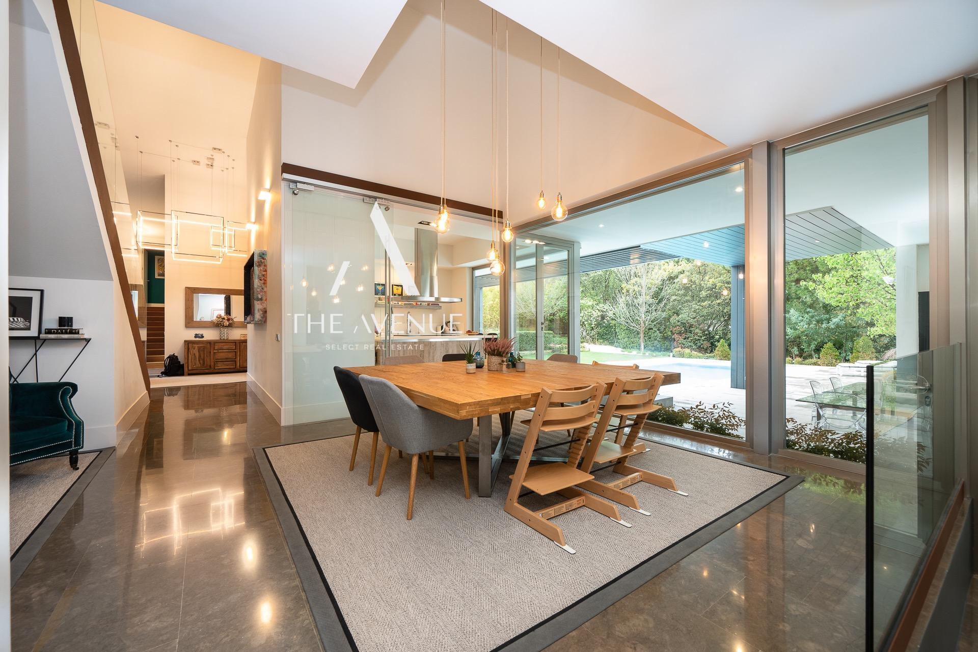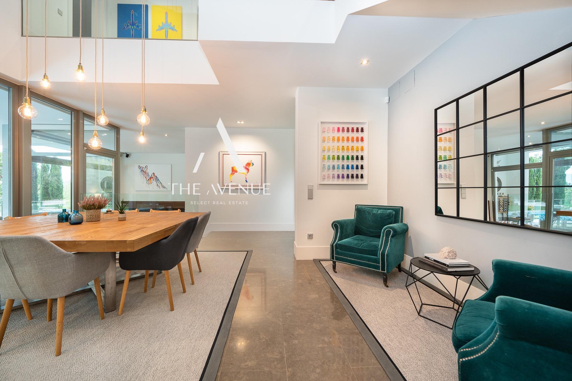 THE AVENUE SELECT REAL ESTATE tiene el placer de presentar esta excepcional propiedad, con una superficie construida de 511 m² sobre una parcela de 1.650 m². La vivienda destaca por la amplitud de sus espacios y una extraordinaria luminosidad, donde interior y exterior se integran de forma natural a través de grandes superficies acristaladas. Su cuidada distribución en dos niveles garantiza funcionalidad y confort, combinando con acierto la elegancia de líneas clásicas con un diseño contemporáneo, subrayado por la imponente doble altura en las zonas de día.