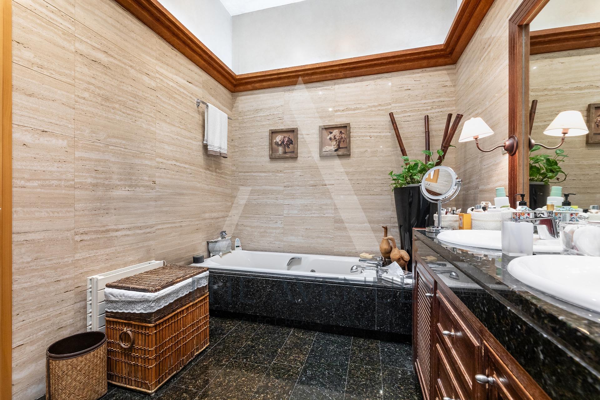 En la primera planta se ubica la suite principal, un auténtico refugio de tranquilidad con vestidor y baño privado, acompañada por cuatro dormitorios adicionales en suite, todos ellos diseñados para ofrecer independencia, amplitud y confort a cada miembro de la familia.